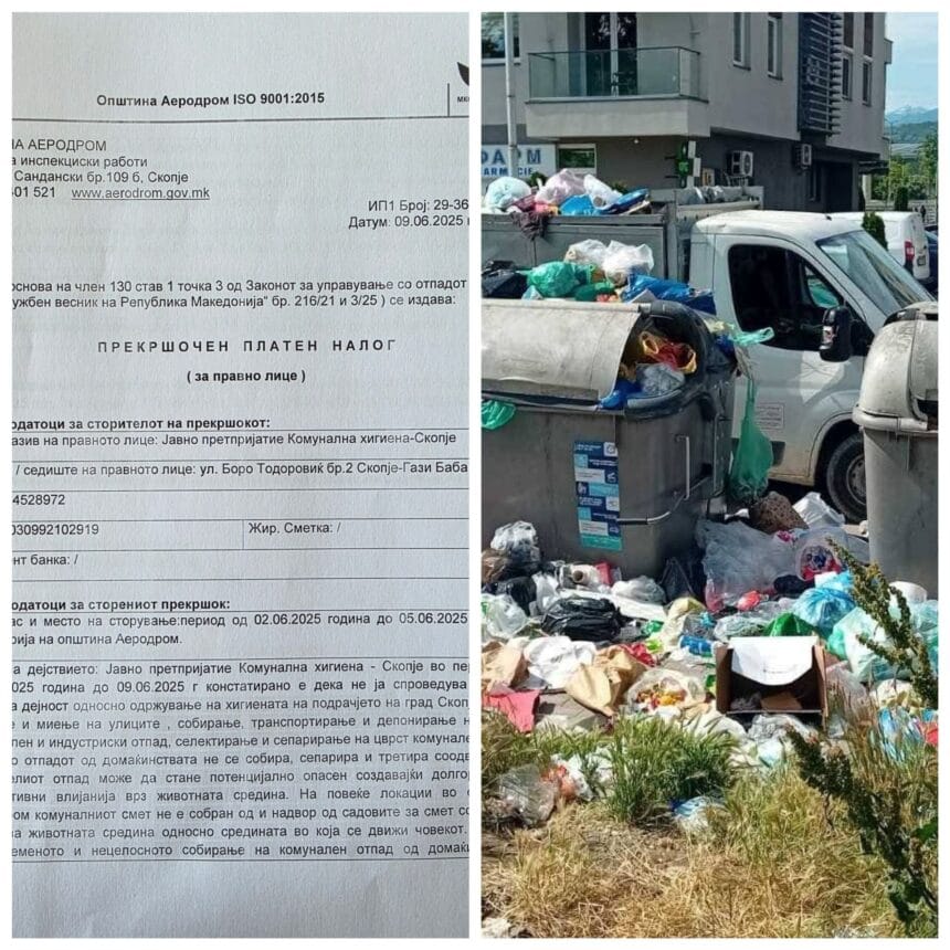 Ndërmarrja Publike “Higjiena Komunale – Shkup” është gjobitur me 88 mijë euro nga Komuna e Aerodromit për moskryerjen e duhur të shërbimeve të pastrimit dhe mirëmbajtjes së hapësirave publike.