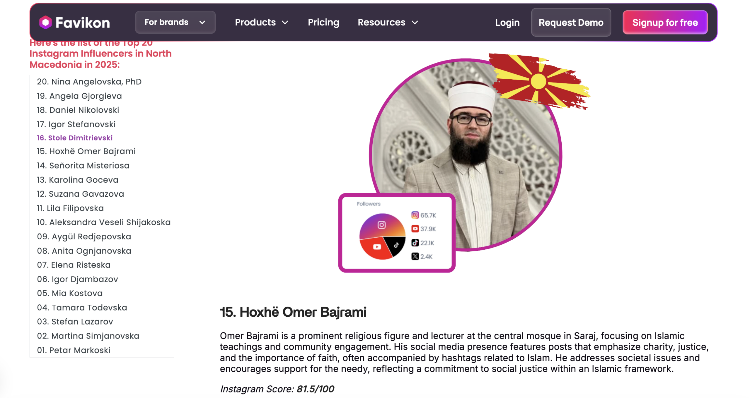 Në këtë link mund ta shihni listën e plotë të rënditjes: https://www.favikon.com/blog/top-instagram-influencers-north-macedonia