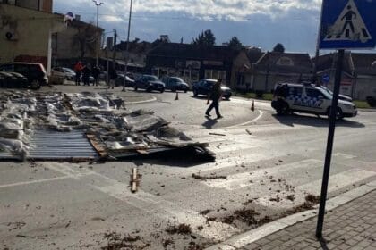 Era e fortë rrëzon kulmin e një ndërtese në Kumanovë