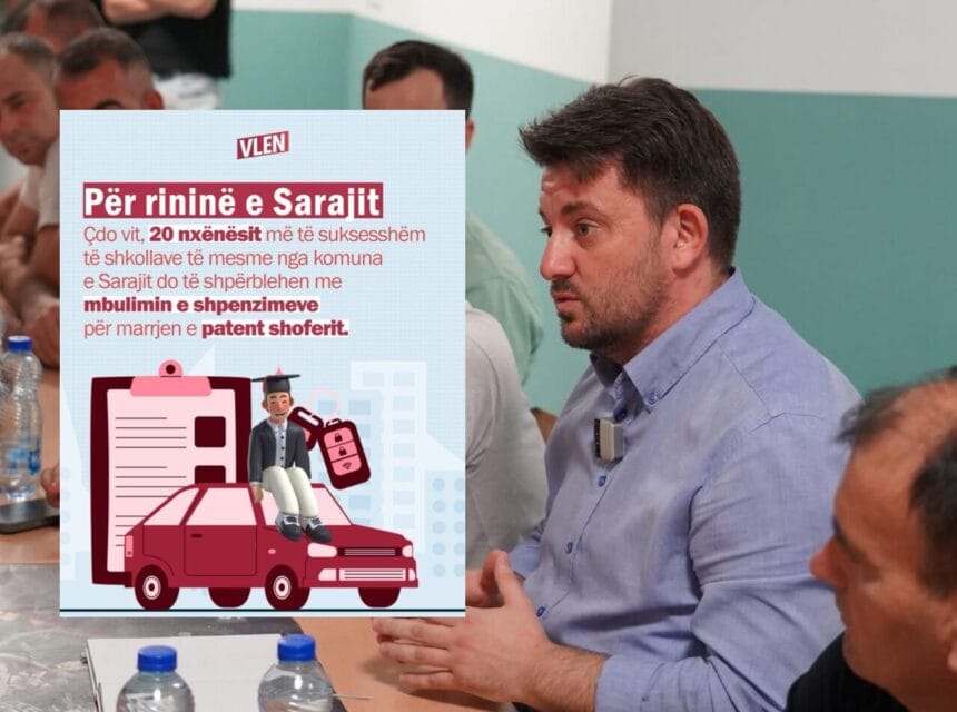 Kandidati për kryetar të Komunës së Sarajit, Muhamed Elmazi, ka paralajmëruar një masë konkrete për të motivuar dhe shpërblyer nxënësit e dalluar. Ai premton se çdo vit, 20 nxënësit më të suksesshëm të shkollave të mesme nga kjo komunë do të përfitojnë mbulimin e plotë të shpenzimeve për marrjen e patentë shoferit.