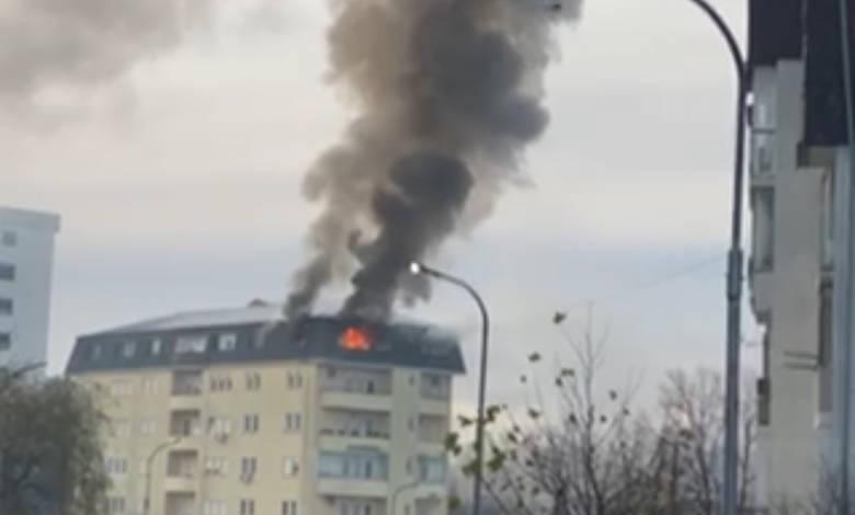 Një ndërtesë në lagjen Bregun e Diellit Prishtinë është përfshirë nga zjarri.