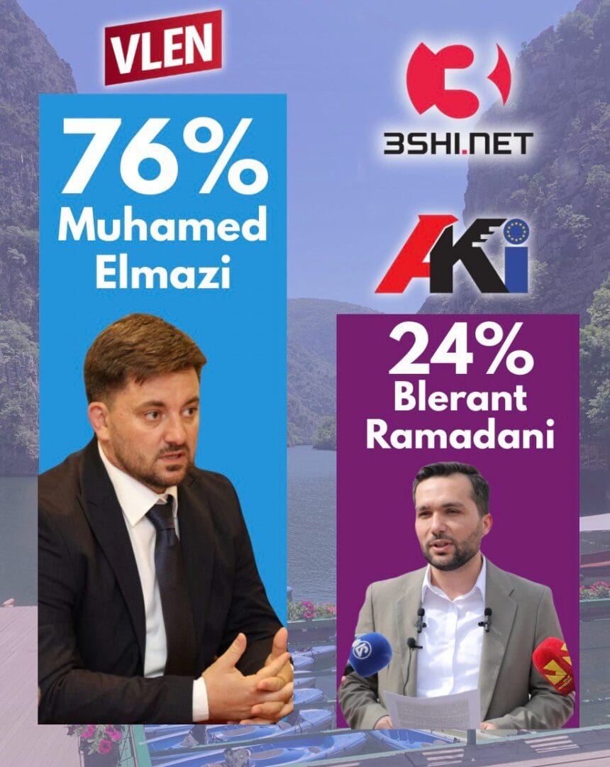 Rezultatet e sondazhit të realizuar nga portali 3shi.net tregojnë epërsinë e pakontestueshme të kandidatit të VLEN-it, Muhamed Elmazi, i cili fitoi bindshëm me 76% të votave. Kundërkandidati i tij nga AKI, Blerant Ramadani, arriti vetëm 24%.