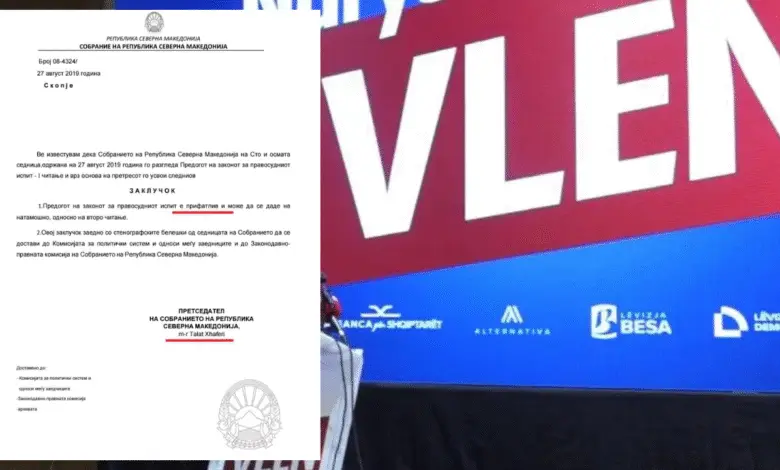 Dokumenti i datës 27 gusht 2019, i nënshkruar nga Talat Xhaferi, është dëshmi e qartë se problemi rreth provimit të jurisprudencës nuk është rastësi, por pasojë e neglizhencës dhe tradhtisë politike. Në atë kohë, Ligji për përdorimin e gjuhëve veçse ishte në fuqi, por Talat Xhaferi si kryeparlamentar nuk kërkoi harmonizimin e ligjit për provimin e jurisprudencës me dispozitat e gjuhës shqipe. Ai e shpalli ligjin të pranueshëm, duke përjashtuar gjuhën shqipe nga provimi.